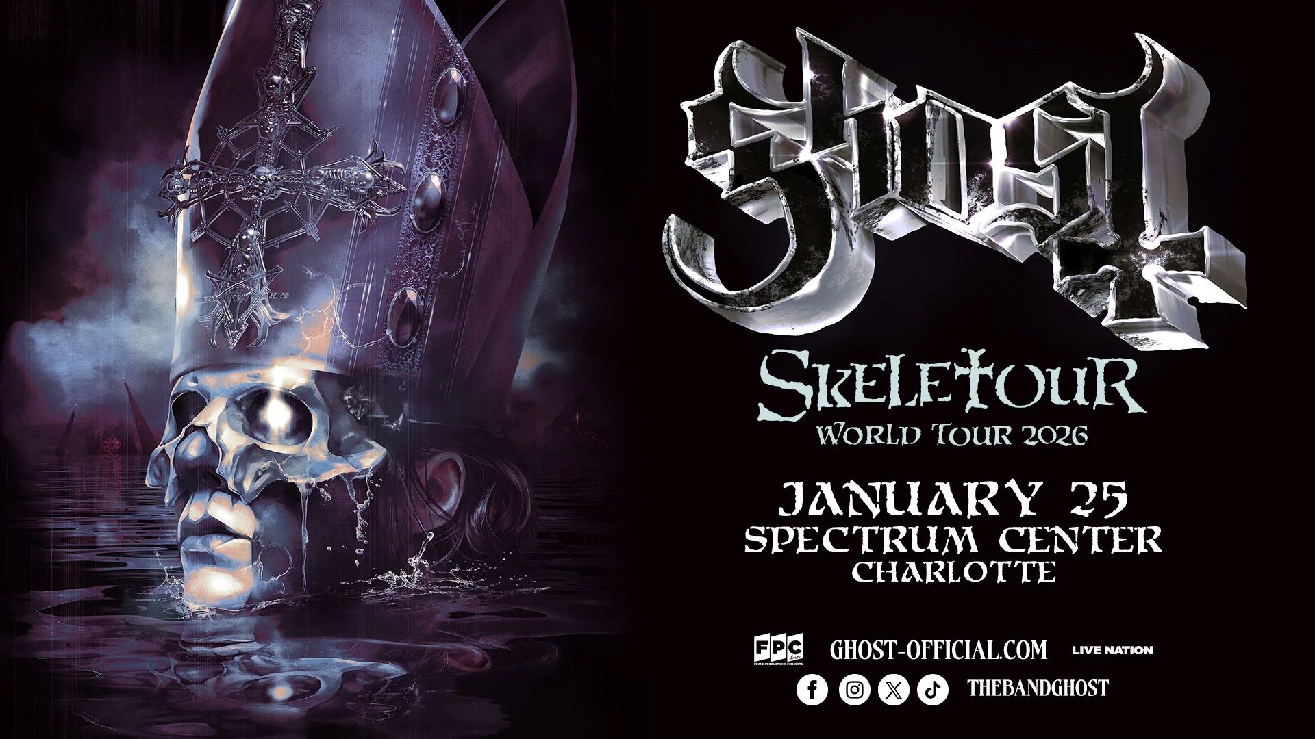 📅 Save the Date: Jan 25, 2026 - Swedish metal giants Ghost bring their theatrically charged Ritual Tour to the Spectrum Center, turning the whole arena into a cathedral of lights, costumes, and pounding anthems. A full-scale spectacle for fans who like their concerts big, bold, and otherworldly.