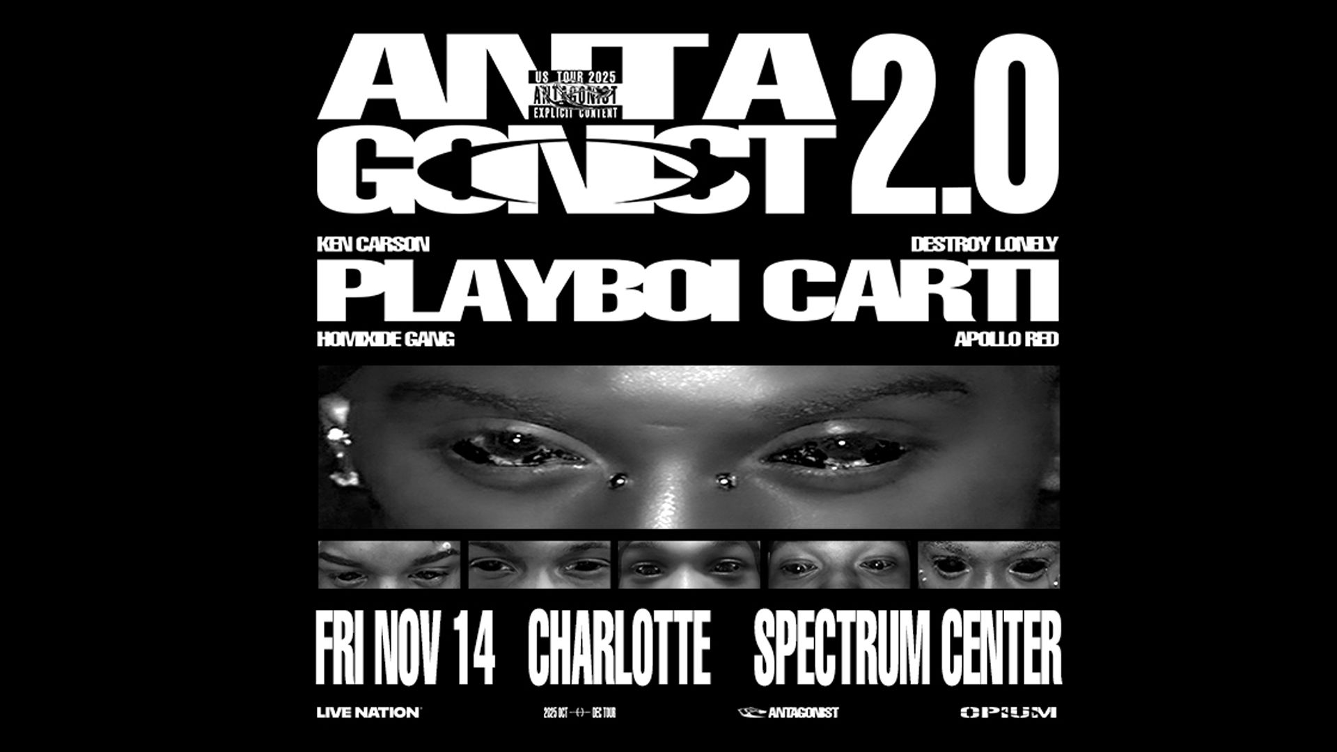 🎫 Save the Date: On Fri Nov 14 2025, join us at Spectrum Center for Playboi Carti’s Antagonist 2.0 Tour—with Ken Carson, Destroy Lonely, Homixide Gang & Apollo Red. Mark your calendar now; this one’s going to be wild.